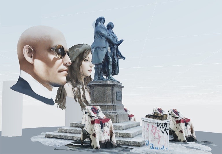 The artwork reflects their life in the "third space" of Weimar, Germany, exploring identity and place through AI avatars and 3D scans of local artifacts. This connects with the historical legacy of German Romanticism and philosophers/artists like Goethe, Schiller, Nietzsche, and Liszt who lived in Weimar. Lichty and Ehtesabian see themselves as modern-day New Romantics within this context.